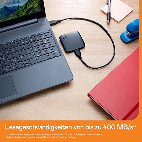 Entdecke die WD Elements™ SE SSD 1 TB: Schnelle Dateiübertragung mit 400 MB/s, robust und kompakt für unterwegs. Plug-and-Play für sofortige Nutzung. Perfekt für effizientes Arbeiten und sicheren Datentransport. Ideal für Beruf und Hobby.