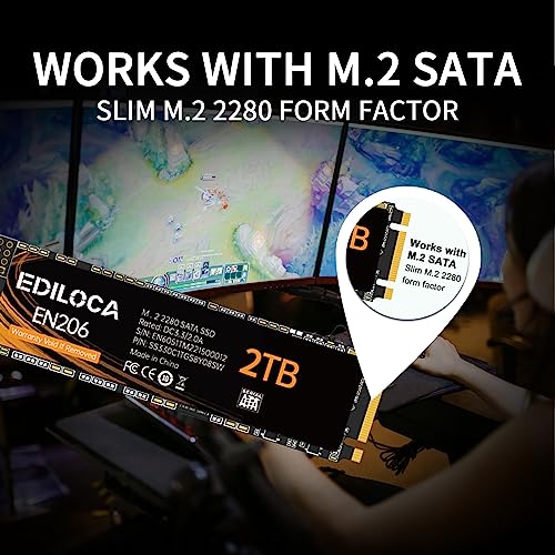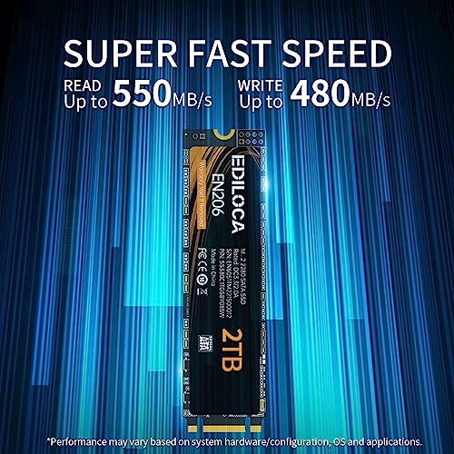 Ediloca EN206 2 TB SSD M.2 SATA 3D NAND TLC, M.2 2280 SATA III 6Gb/s SSD interne Festplatte, Lese-/Schreibgeschwindigkeit bis zu 550/480 MB/s, kompatibel mit Ultrabooks, Tablet-Computern und Mini-PCs