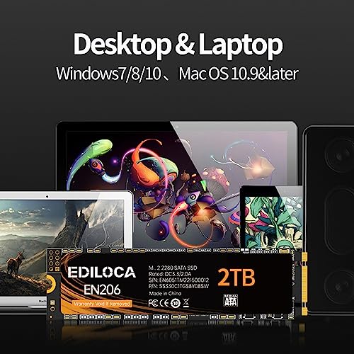 Erlebe ultraschnelle Leistung mit der Ediloca EN206 2TB M.2 SATA SSD. Verbessere deine Computerstartzeit und Programmausführung. Kompatibel mit Ultrabooks und Mini-PCs, bietet sie hohe Zuverlässigkeit und 3 Jahre Garantie für sorgenfreies Arbeiten.