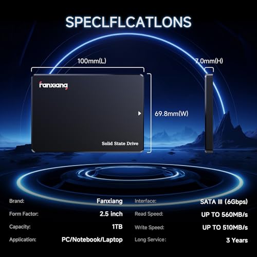 Beschleunige deine Anwendungen mit der fanxiang SATA SSD 1TB. Genieße schnelle Datenübertragung mit bis zu 550 MB/s Lesegeschwindigkeit. Ideal für Gaming, Design und Büroarbeiten. Vermeide Datenverluste dank moderner Technologie und SLC Cache-Unterstützung.