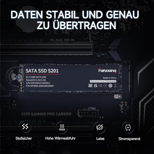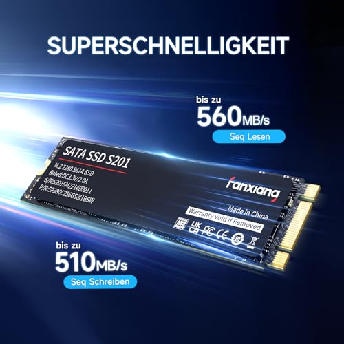 | Features | Hervorragende Leistung: Die fanxiang SSD M.2 SATA 2280 mit SLC Cache bietet Lesegeschwindigkeiten bis zu 560 MB/s und Schreibgeschwindigkeiten bis zu 510 MB/s – ideal für schnelles Booten, Multitasking und effizientes Arbeiten., Hohe Kompatibilität: fanxiang M2 SSD 512GB ist geeignet für PC, Notebook und All-in-One-Maschine, perfekt kompatibel mit Windows 7/8/10/11, unterstützt M2 SATA 2280-Schnittstelle, die Vielseitigkeit für alle Arten von Geräten bietet., Zuverlässige Speicherlösung: Mit SLC-Cache-Technologie ausgestattet, garantiert die fanxiang M.2 SSD eine langlebige und stabile Datenübertragung. Optimal für hohe Arbeitsbelastungen und professionelle Anforderungen., Effizientes Energiemanagement: Diese Interne SSD M2 wurde entwickelt, um den Energieverbrauch zu senken und die Akkulaufzeit Ihres Laptops zu verlängern, während die hohe Leistung beibehalten wird. Ideal für mobile Geräte und energieeffizientes Arbeiten., Garantie: fanxiang verpflichtet sich, langlebige und robuste Hochleistungs-SSD mit einem 3-Jahres-Kundenservice herzustellen. Das Produkt wird mit einem Schraubendreher für die Installation geliefert, um den Benutzern die beste Erfahrung zu bieten.ten. |
