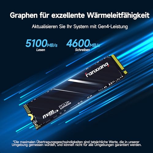 Erlebe ultraschnelle Leistung mit der fanxiang NVMe M.2 SSD! Mit Lesegeschwindigkeiten von bis zu 5100 MB/s und Schreibgeschwindigkeiten von 4600 MB/s ist sie ideal für Gaming und Datenübertragung. Kompatibel mit vielen Systemen, inklusive 5 Jahre Garantie.