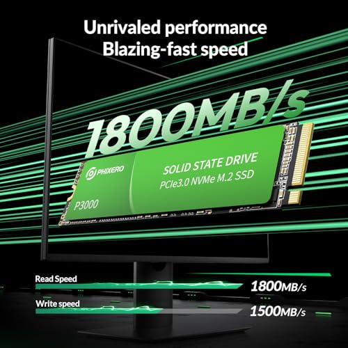 PHIXERO P3000 256GB NVMe M.2 SSD, PCIe 3.0,1800 MB/s Lesen, Interne SSD für Gaming und Alltagsanwendungen