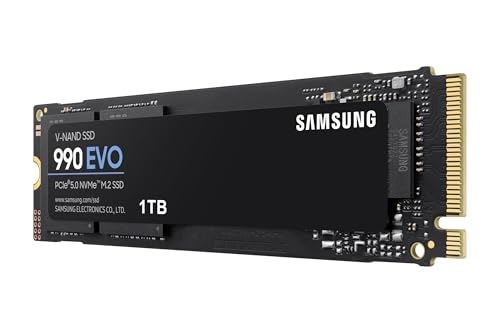 Samsung 990 EVO NVMe M.2 SSD 1 TB, PCIe 4.0 x4 / PCIe 5.0 x2, NVMe 2.0 (2280), 5.000 MB/s Lesen, 3.200 MB/s Schreiben, Interne SSD für Gaming und Grafikbearbeitung, MZ-V9E1T0BW