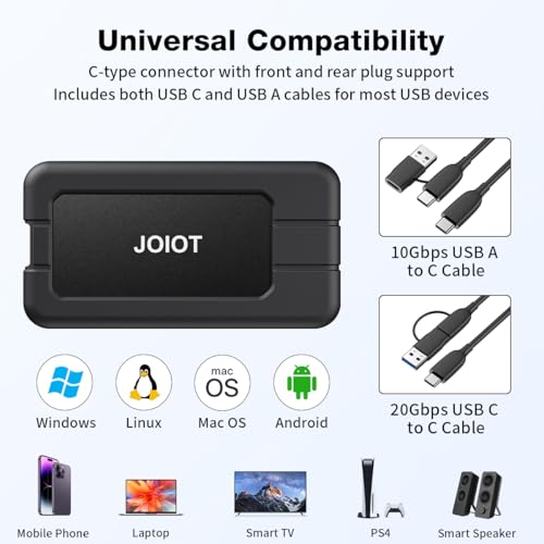 Die externe SSD bietet große Kompatibilität mit einer Vielzahl von Geräten und Betriebssystemen. Ob du Windows, Mac OS, Linux oder andere Systeme verwendest, die JOIOT SSD lässt sich problemlos anschließen und verwenden.