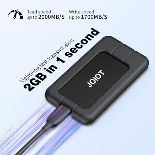 Die JOIOT SSD sticht durch ihre beeindruckende Geschwindigkeit hervor. Mit einer Lesegeschwindigkeit von bis zu 2000MB/s und einer Schreibgeschwindigkeit von bis zu 1700MB/s kannst du große Dateien in Sekundenschnelle verschieben. Das erleichtert es dir, effizient zu arbeiten, besonders wenn es um datenintensive Aufgaben geht.